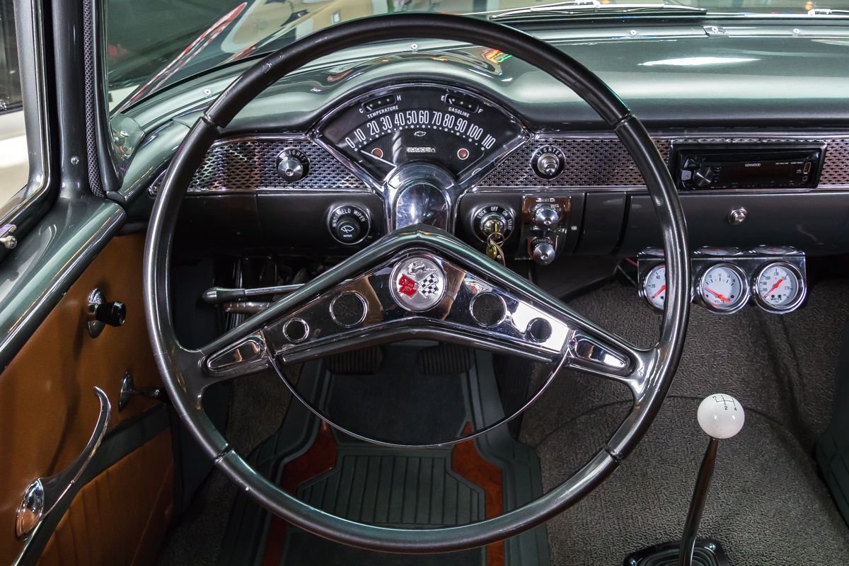 Power comes from a Chevrolet 350ci V8 paired with a 4-speed manual transmission, delivering a hands-on driving experience that perfectly suits the character of a Tri-Five Chevy. The dual exhaust system adds a classic V8 soundtrack, making every drive feel special. Power-assisted brakes with front discs provide confident stopping power, enhancing both safety and drivability.