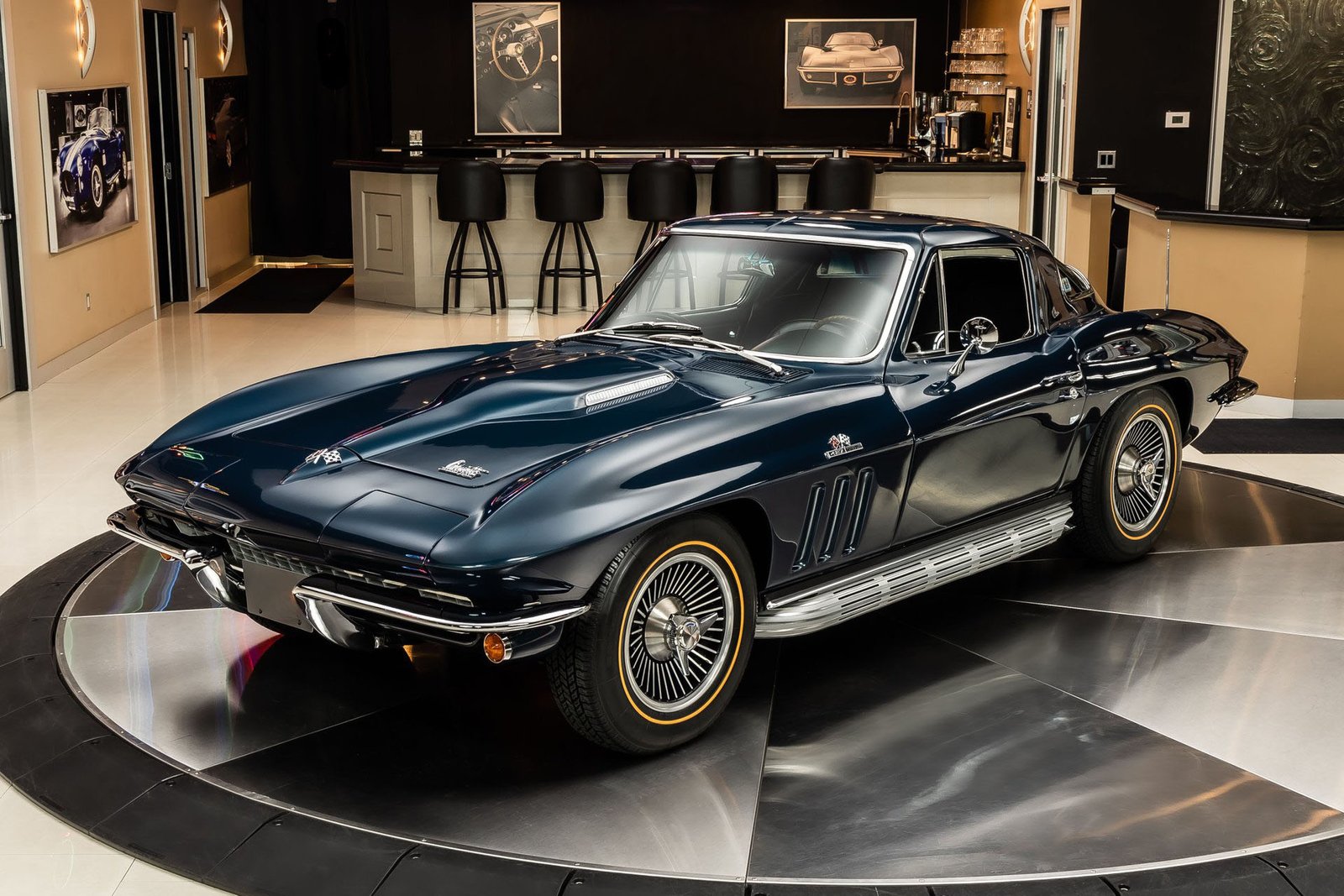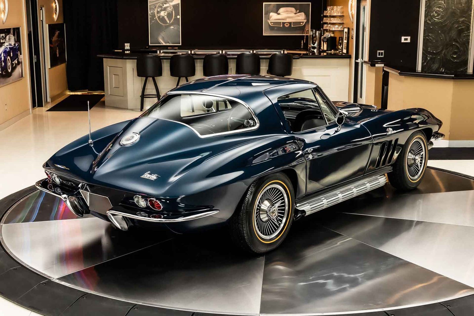 Inside, the black interior remains faithful to original specifications, featuring bucket seats, factory instrumentation, and classic Corvette cockpit design. From the restored undercarriage to the documented drivetrain and award recognition, this Stingray Coupe represents a rare opportunity to own a meticulously restored, historically significant Corvette built to exacting standards.