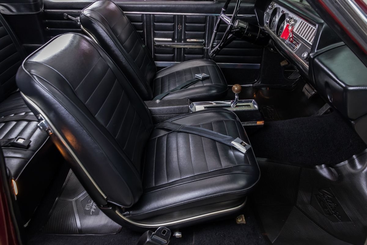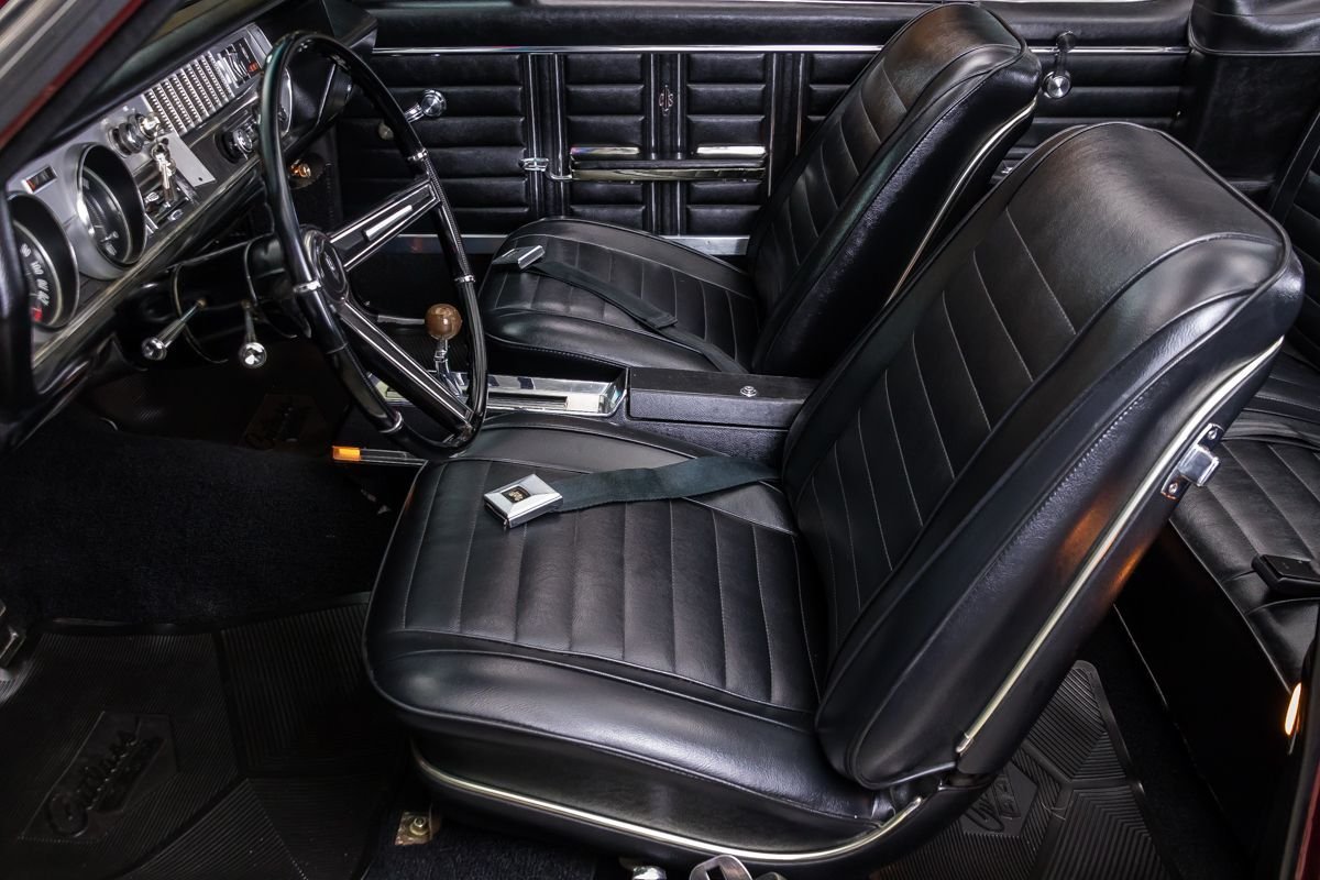 Inside, the black bucket-seat interior offers a clean, factory-style appearance with a center console and floor shifter. The dash, upholstery, and trim reflect the same level of care seen throughout the car, creating a cabin that feels both authentic and inviting. Everything works together to provide a comfortable, driver-focused environment.