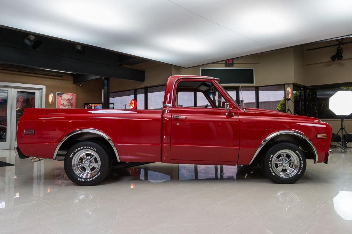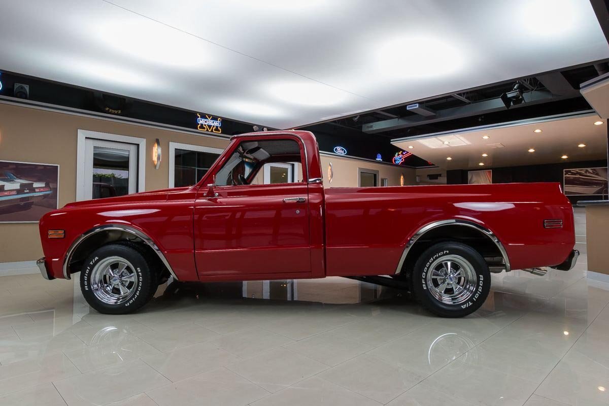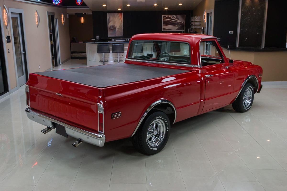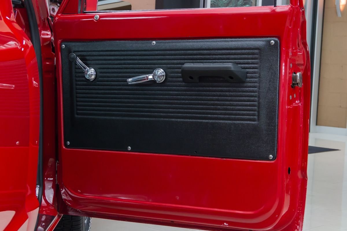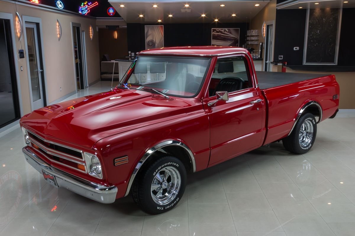This restored 1968 pickup blends the clean, squared-off styling of the late ’60s with a fresh, professionally completed frame-off build. The model year is well regarded for its simple, purposeful design and improved ride quality compared to earlier generations. Finished in a vibrant red with new sheet-metal panels, chrome bumpers, and updated lighting, this all-steel example presents with the crisp, straight lines and tight panel fit expected from a recent restoration.