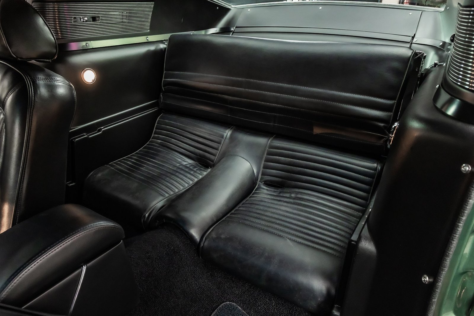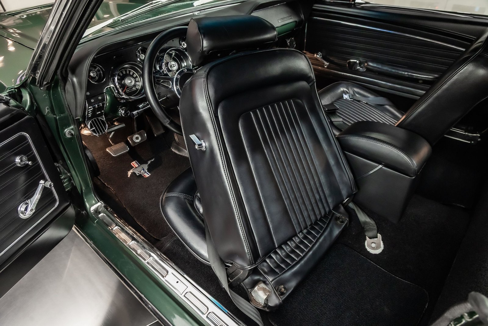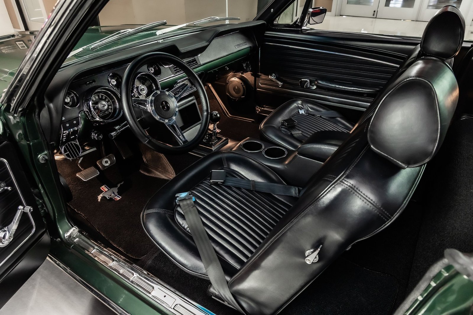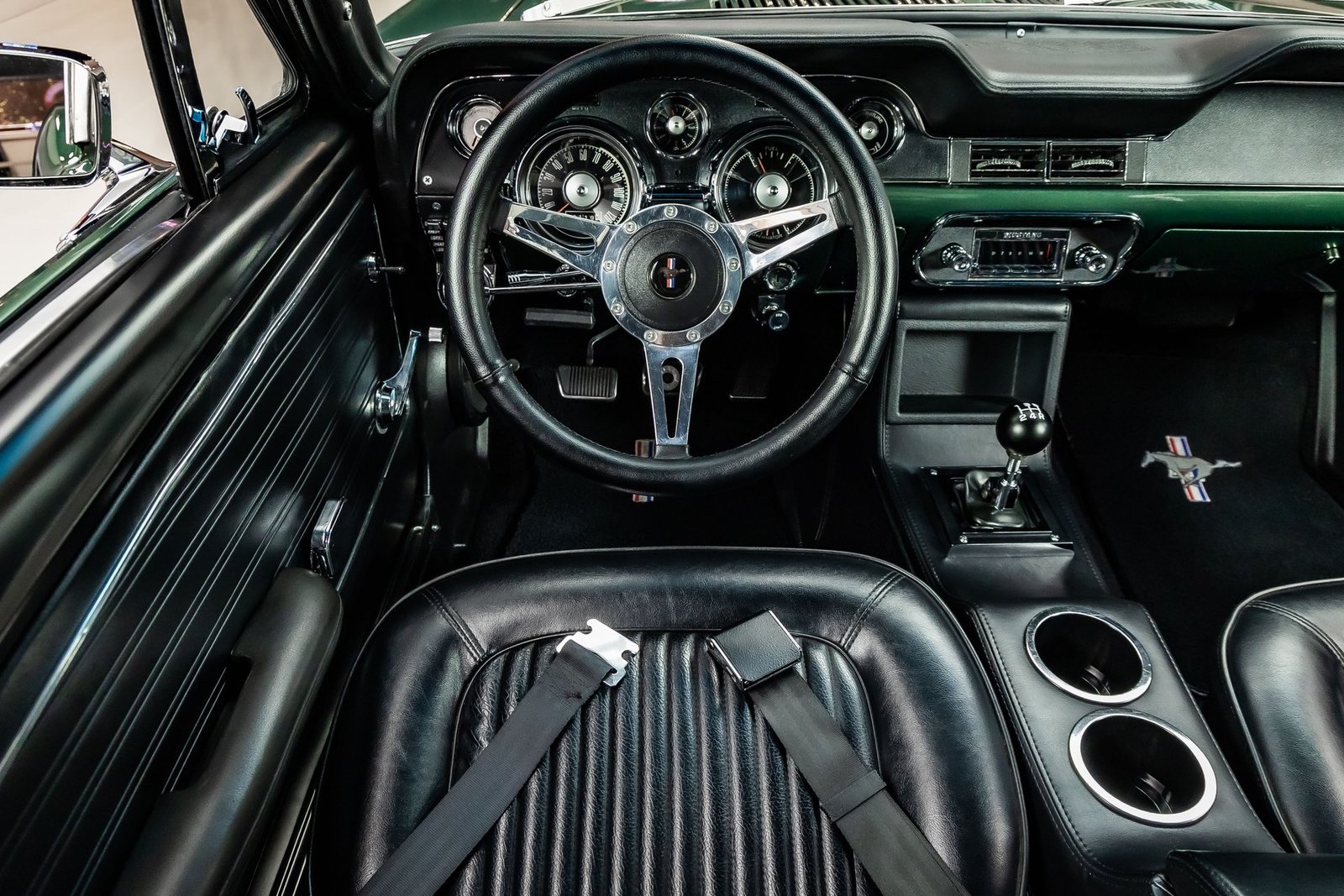 Inside, the black interior maintains a classic, driver-focused layout that stays true to the Mustang’s original character. The fastback cabin design, combined with restored components and thoughtful upgrades, creates an environment that feels both authentic and comfortable behind the wheel.