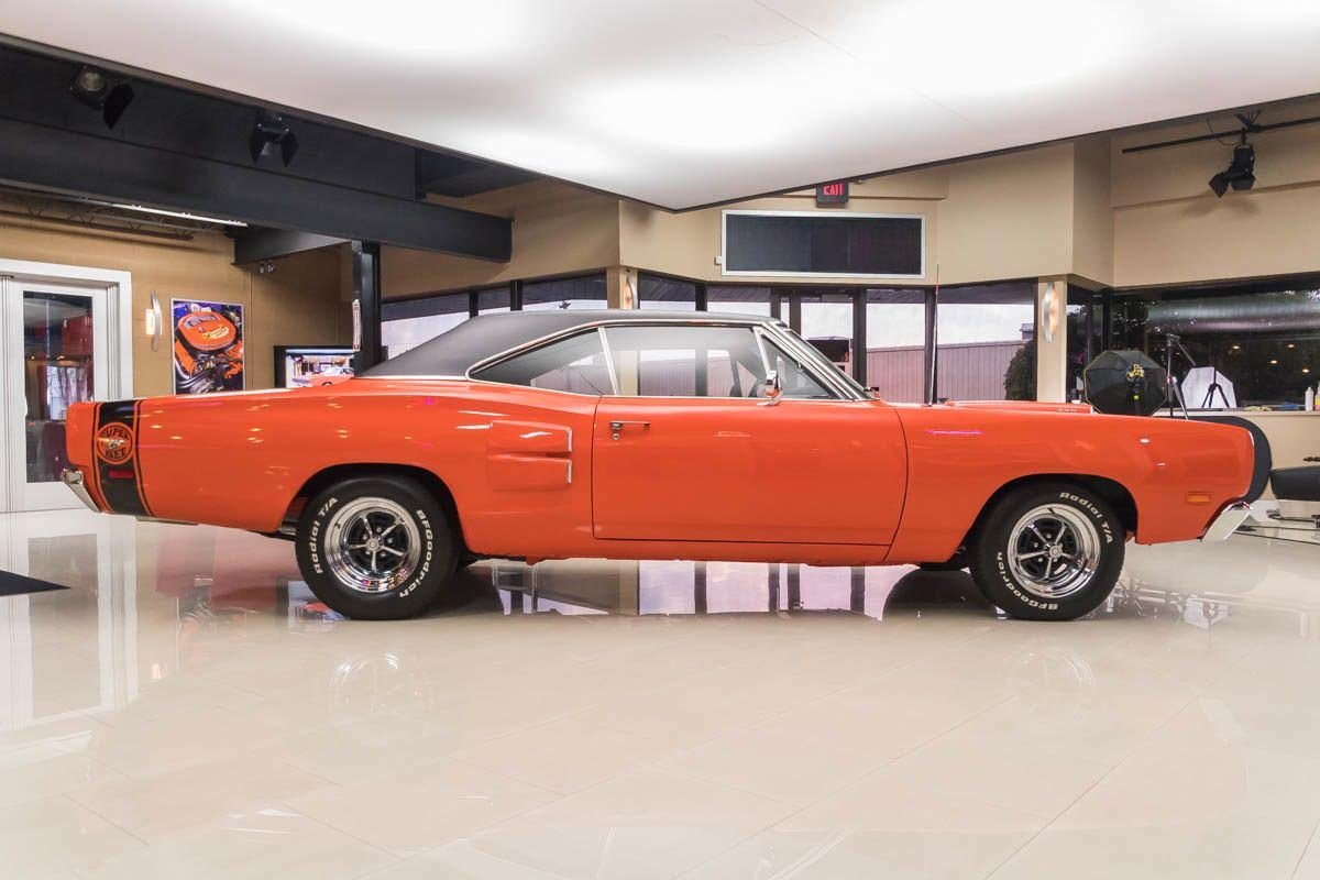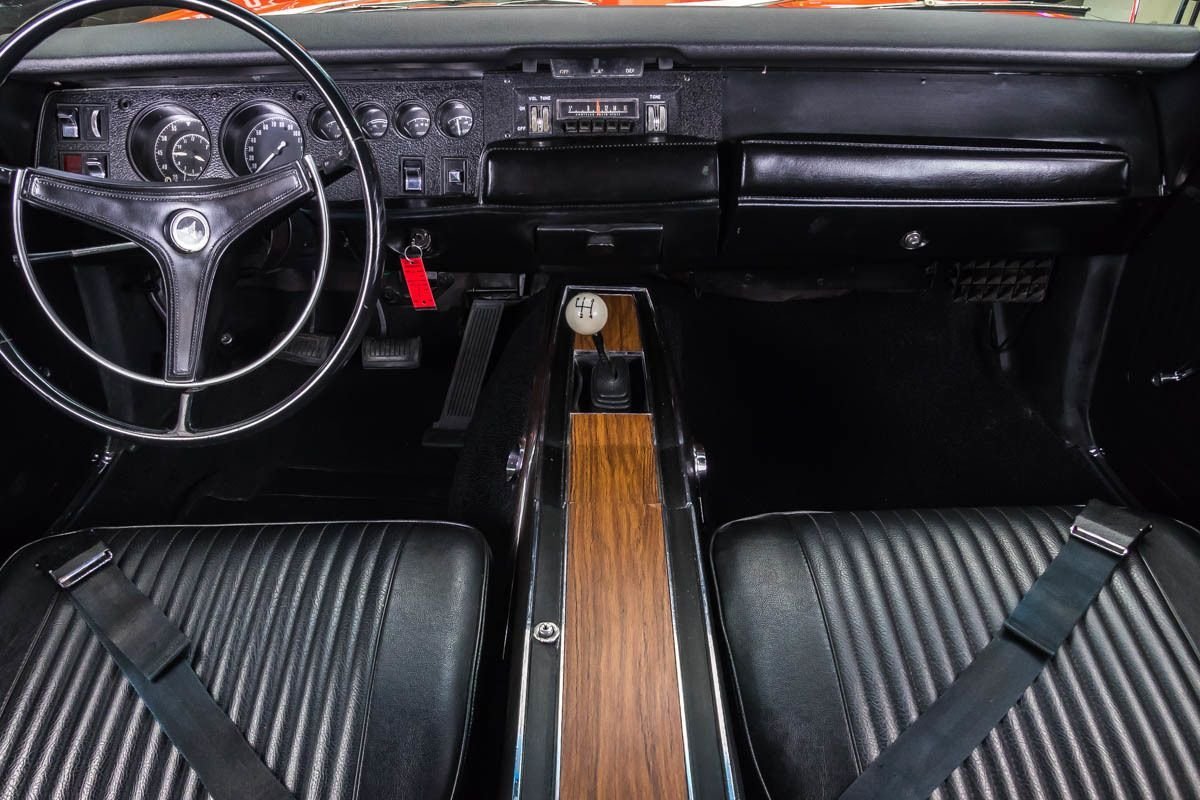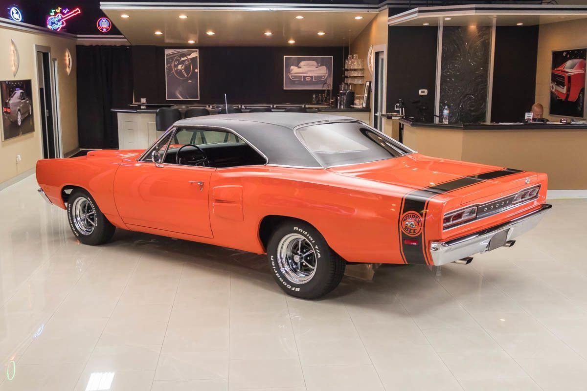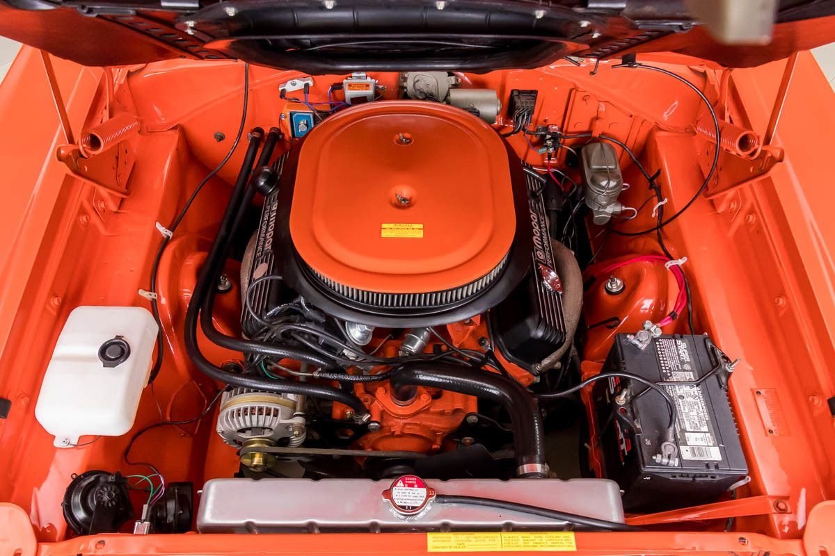 This example has undergone a complete rotisserie restoration and retains its original sheet metal, a major plus for collectors. Finished in its original orange color, the car presents with strong visual impact and classic Super Bee personality. With only a few hundred miles driven since completion, it maintains a fresh, tightly sorted feel that reflects the quality of the restoration.