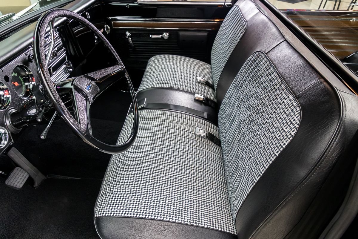 Inside, the cabin has been fully restored with a deluxe black houndstooth interior that complements the exterior perfectly. The combination of classic styling, correct mechanicals, and thoughtful upgrades results in a C10 that not only looks exceptional but also drives with confidence and ease—an excellent example of a properly restored 1970 Chevrolet pickup.